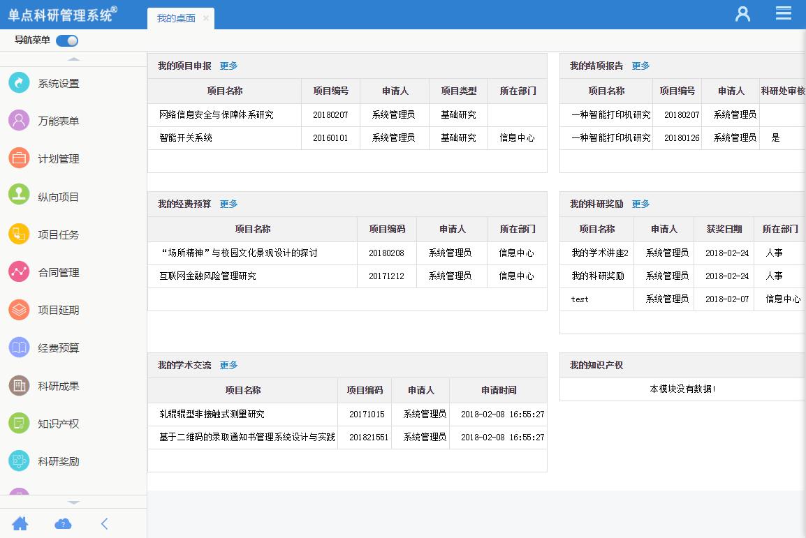 单点科研管理系统价格:请联系公司销售人员 购买联系方式 在线试用(用户名:readonlyuser 密码为空)
