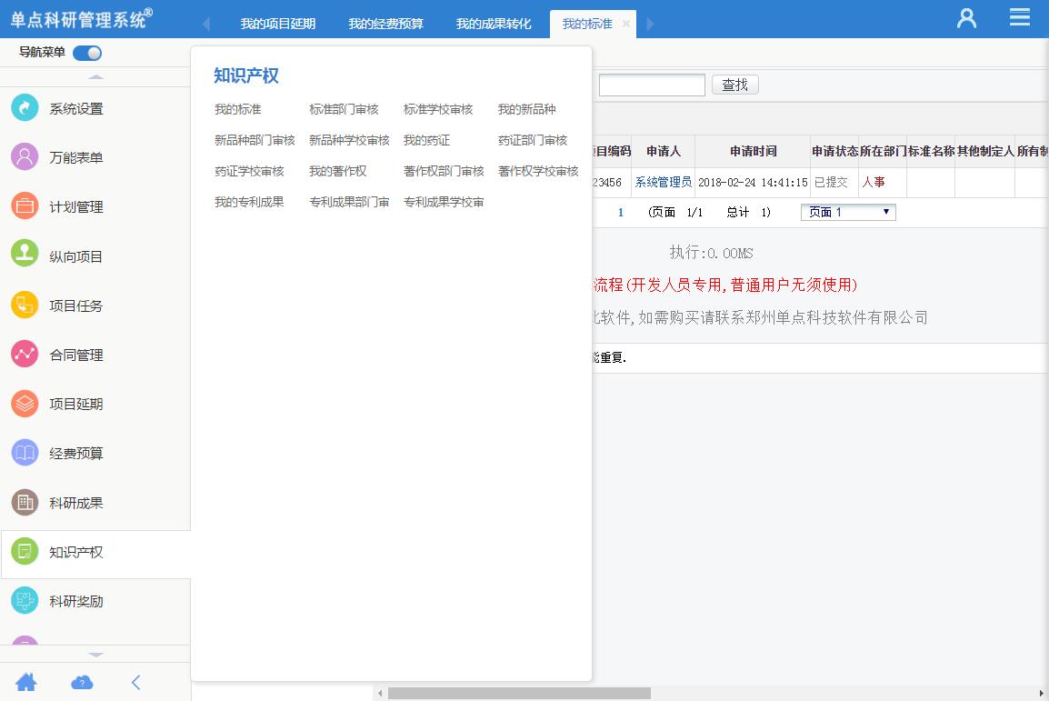 成果管理:科研成果、知识产权、科研奖励、学术交流、论文管理,审核流程
